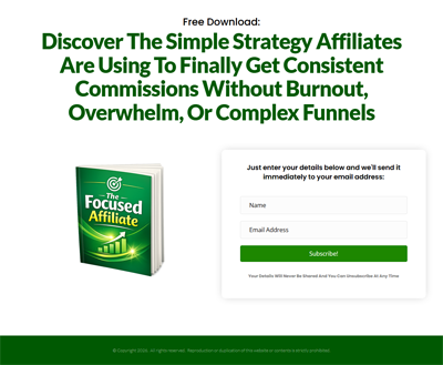 The Focused Affiliate is a high-impact, no-fluff guide that gives you the blueprint for building a simple, profitable affiliate business that you can actually stick to.
